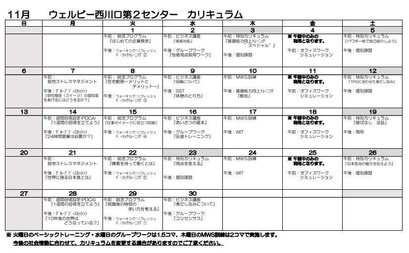センター毎にパワーポイントを作成し、ウェルビーの代表的なカリキュラムを紹介。