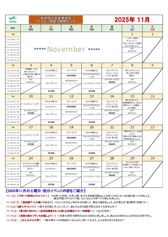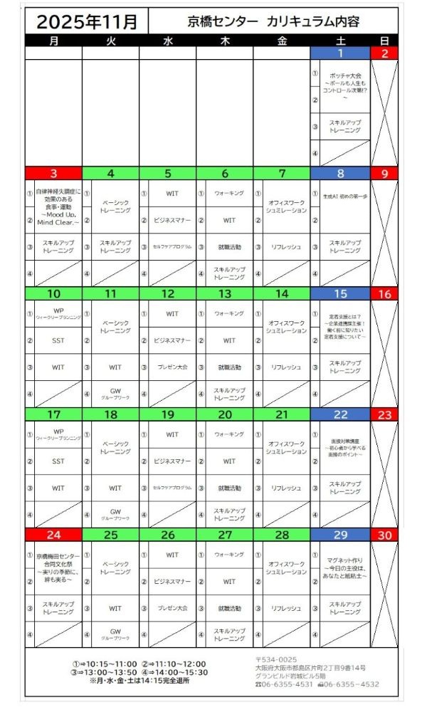 さて、京橋センターでは11月のカリキュラム表が完成いたしました!