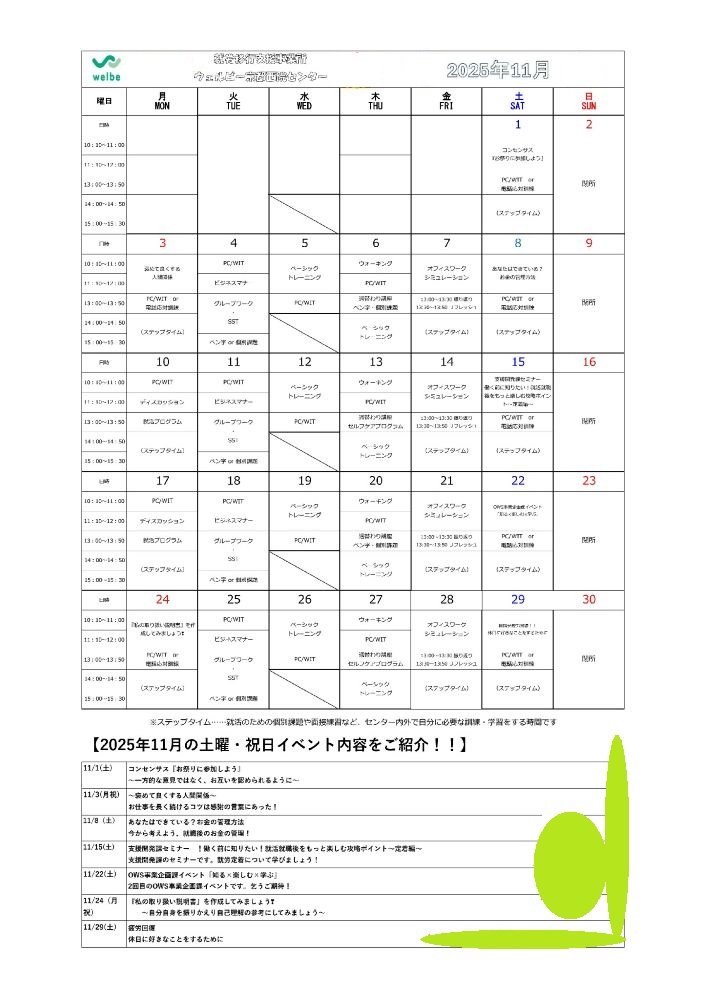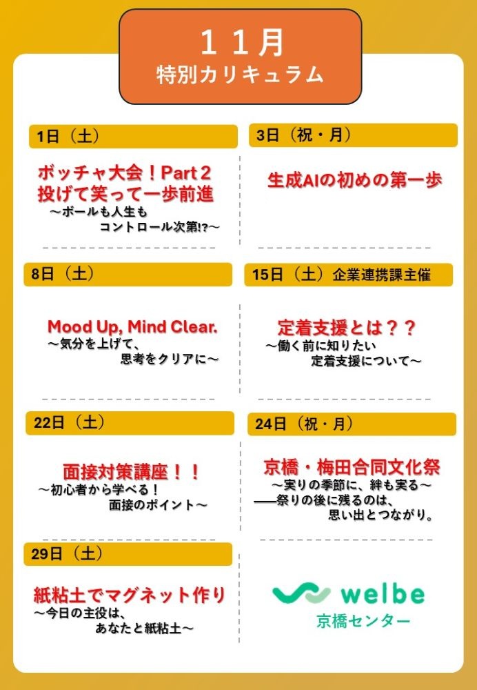 今月も、就労に役立つ楽しいイベントをご用意いたしました。