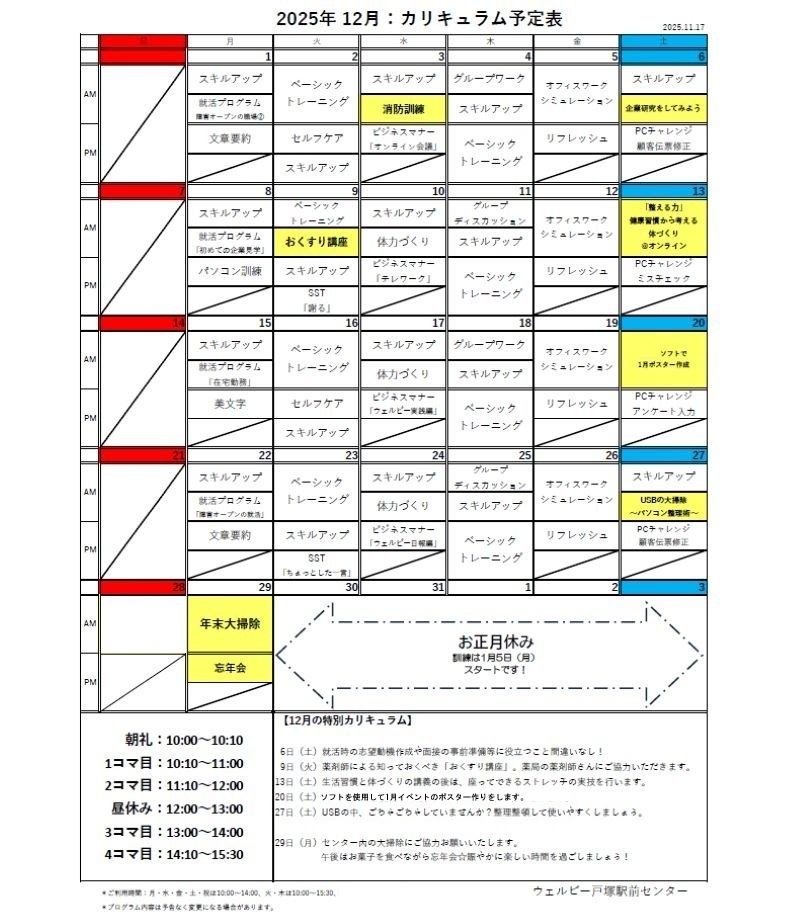 【戸塚駅前】12月プログラム表のご案内