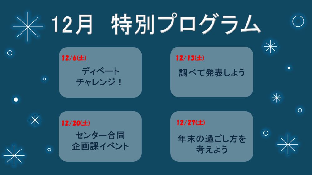 早速ですが、11月の特別プログラムについてご紹介いたします。