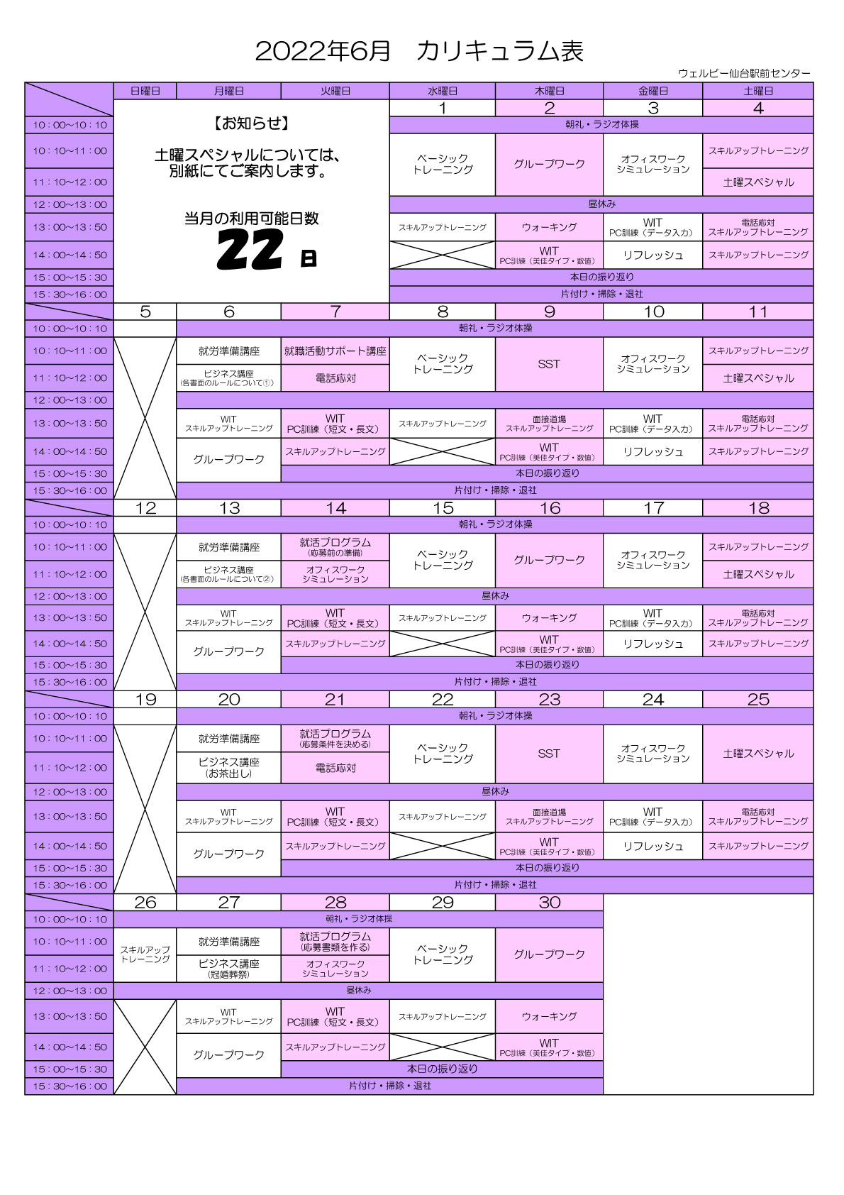 ウェルビー仙台駅前センター_6月度カリキュラム表