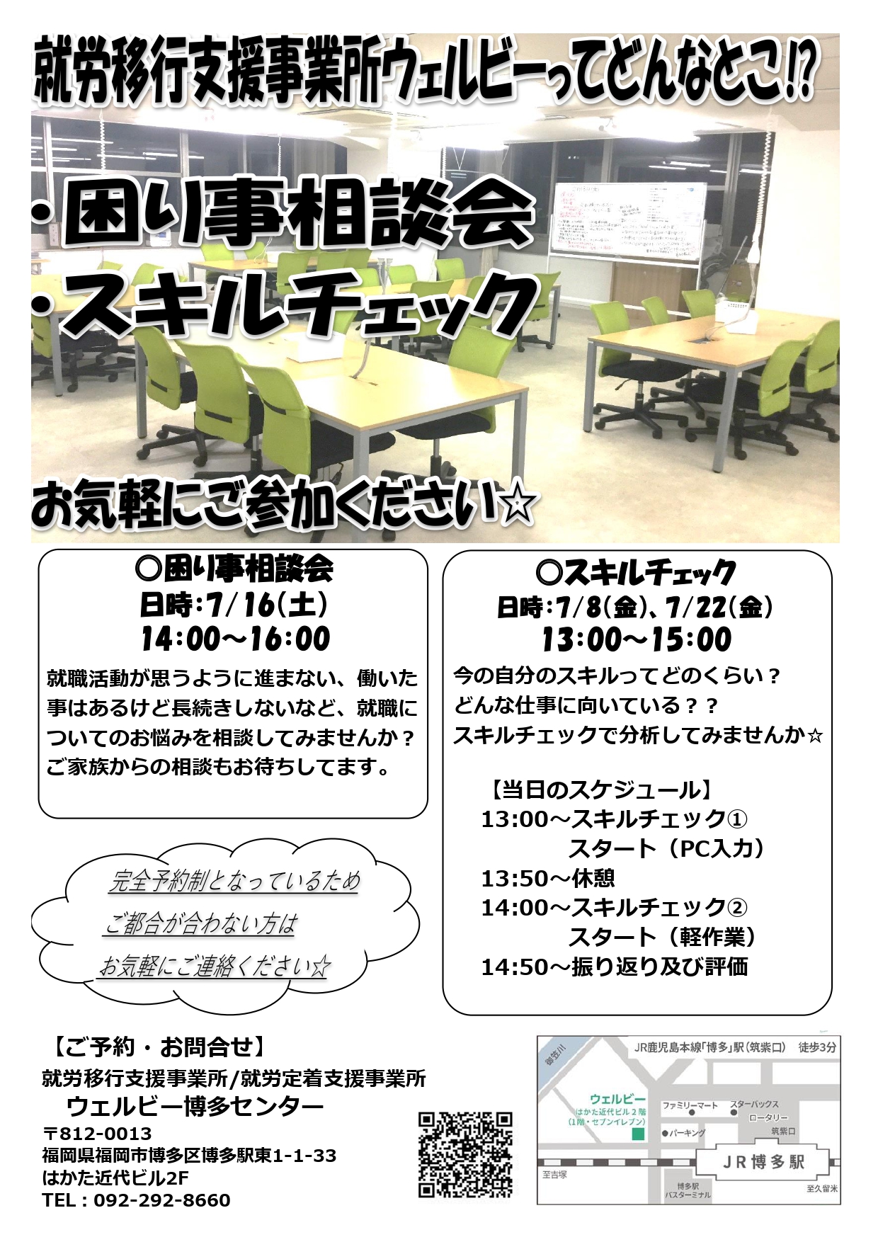 スキルチェック 7/8(金)、7/22(金)13:00 ~ 15:00