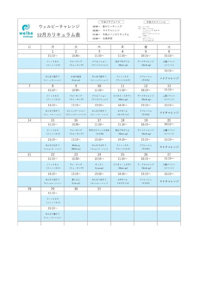 それでは、ウェルビーチャレンジ高崎センターの12月のカリキュラムを発表したいと思います。