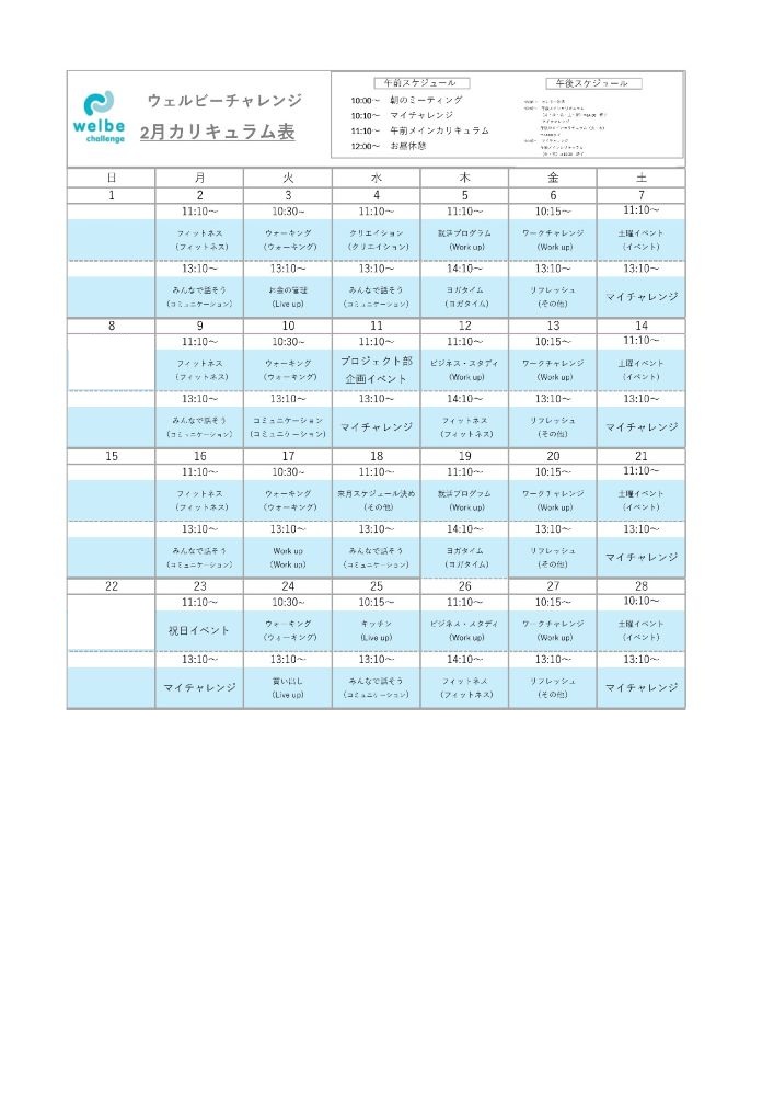 それでは、ウェルビーチャレンジ高崎センターの2月のカリキュラムを発表したいと思います。