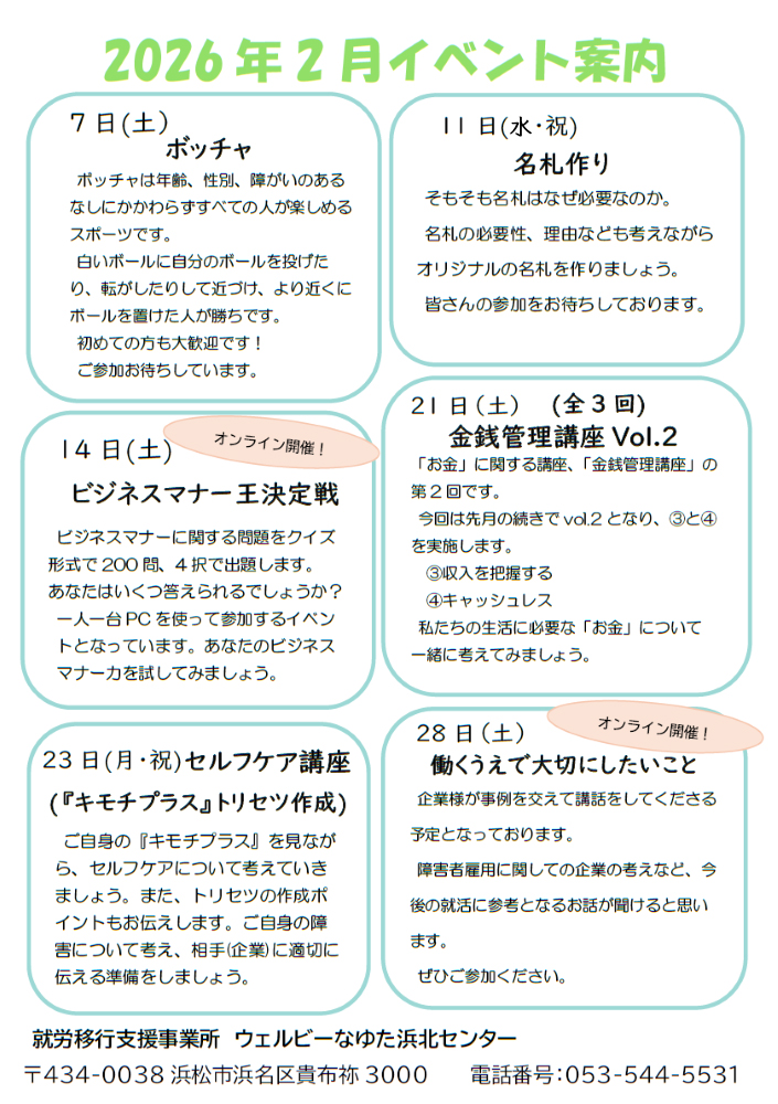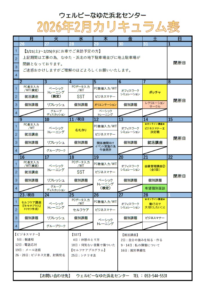 【なゆた浜北】2月カリキュラム紹介