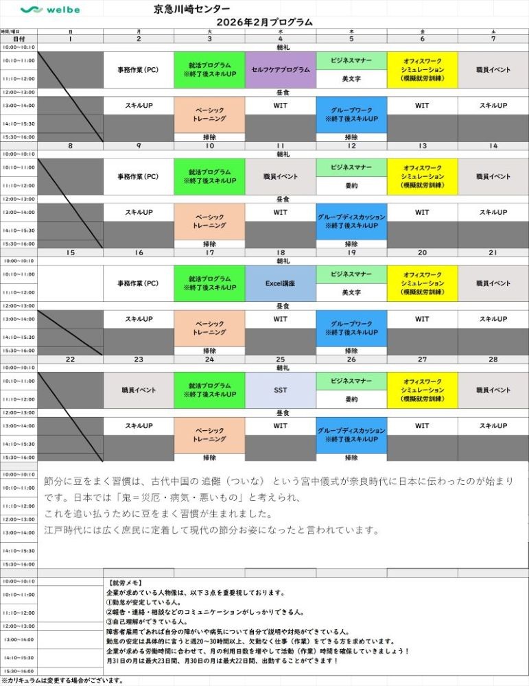 今回は、2月のプログラム表の紹介と復職復職(リワーク)についてお話していきたと思います。
