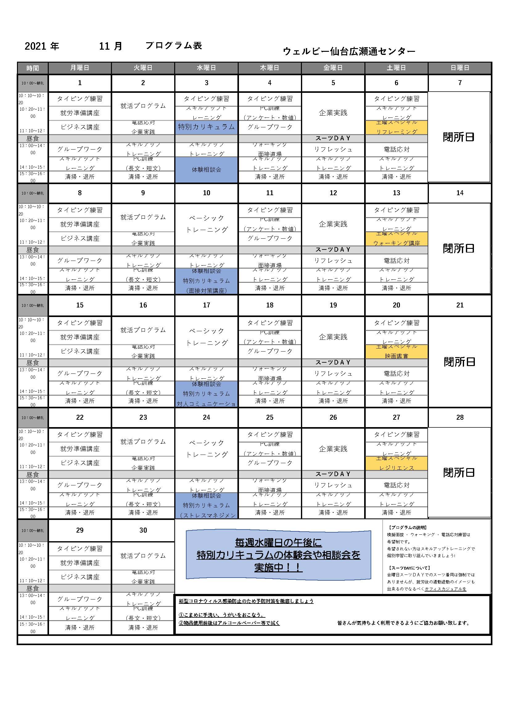 パソコン訓練や軽作業訓練、コミュニケーションスキルトレーニング、ビジネスマナー講座や就活講座、実践的な訓練(企業実践)などバラエティに富んだ就労訓練を行いながら、