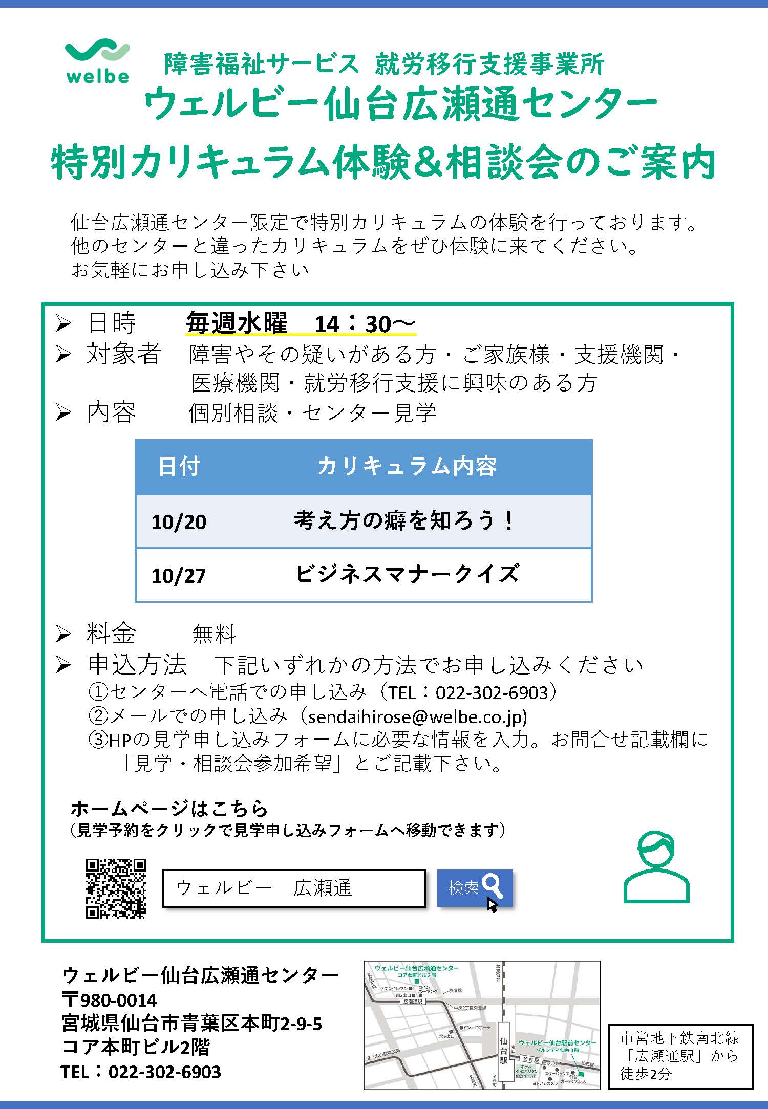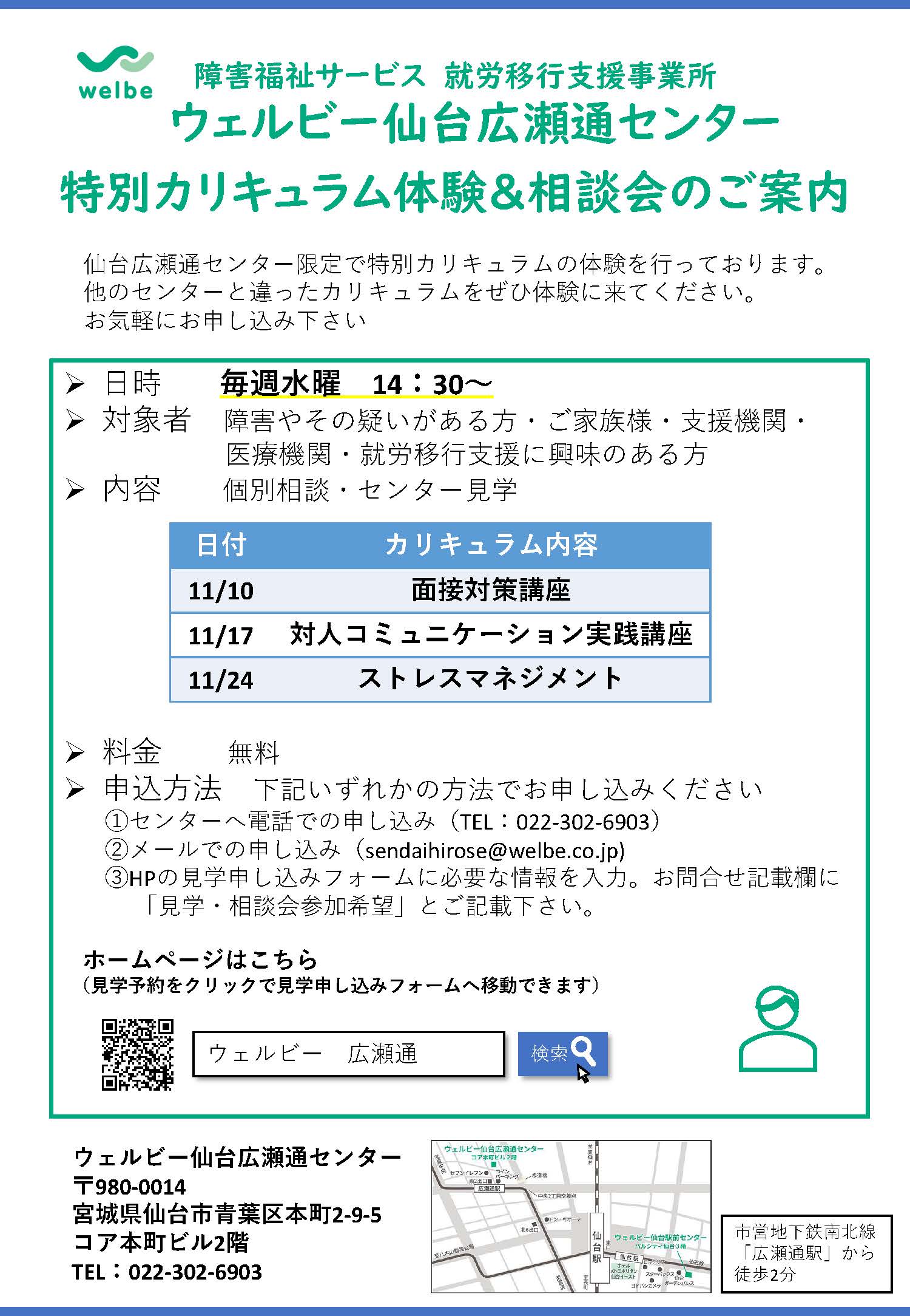 障がいがあって就労が困難だと感じている方、就職する意志はあるがメンタルに不安があっていま一歩が踏み出せない方など、まずはお気軽にお問い合わせください!