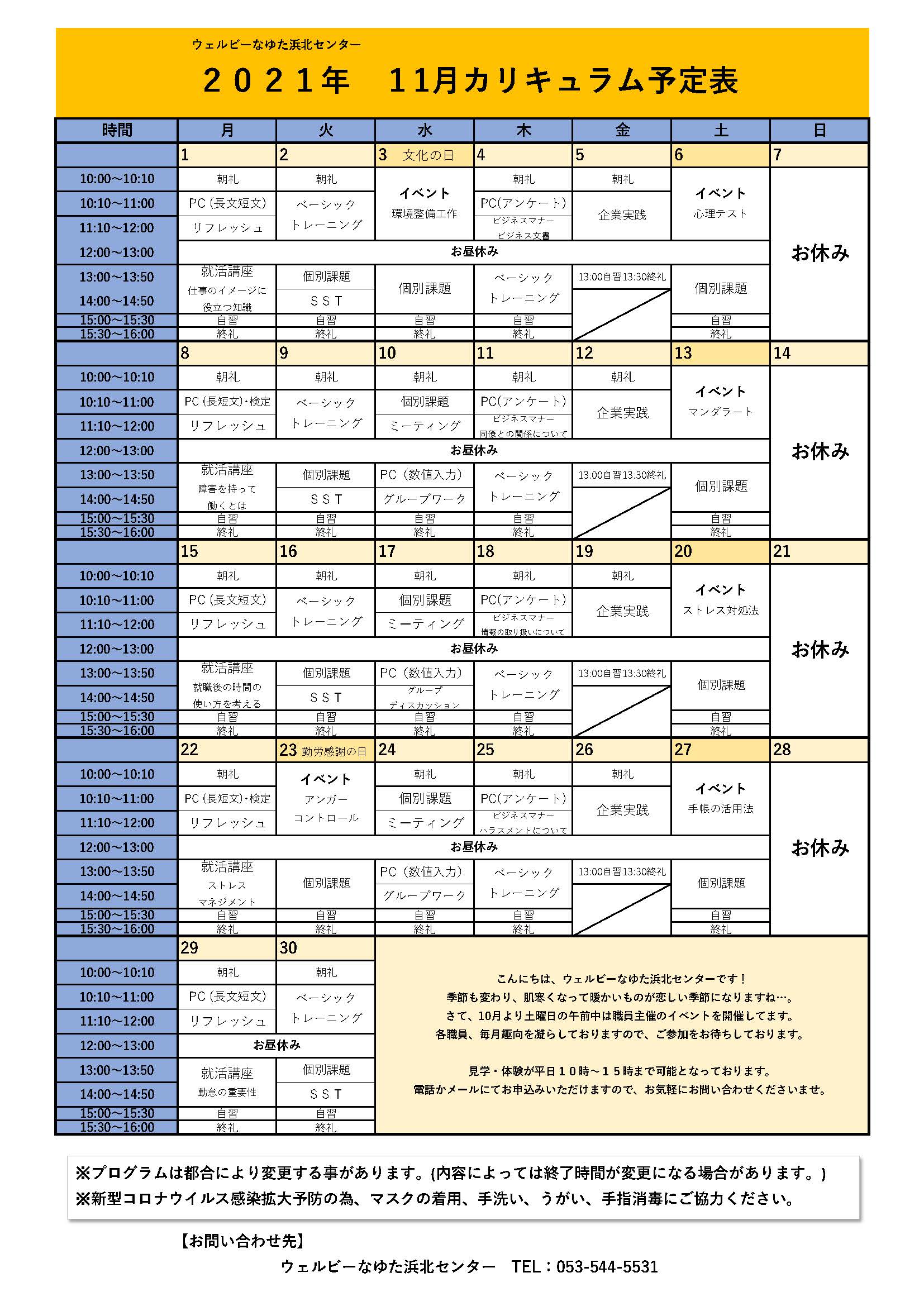 ≪イベントのお申し込みは、電話・メール・Faxにて受付しております≫