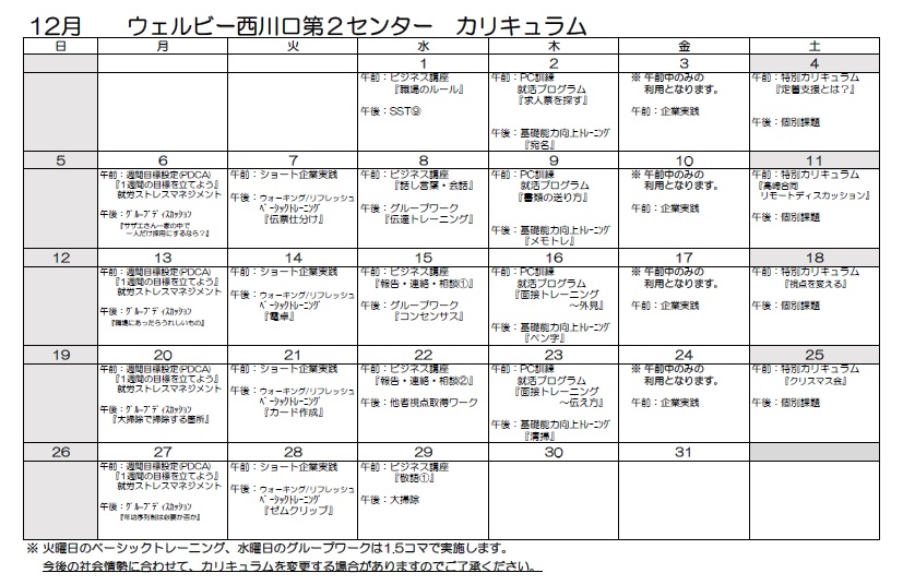 25日(土)は、「スタッフプレゼンツ!クリスマス会」を開催します。スタッフが企画したクリスマス会で、当日は十人十色ゲームなどを実施する予定です。気軽にご参加いただけるとうれしいです。