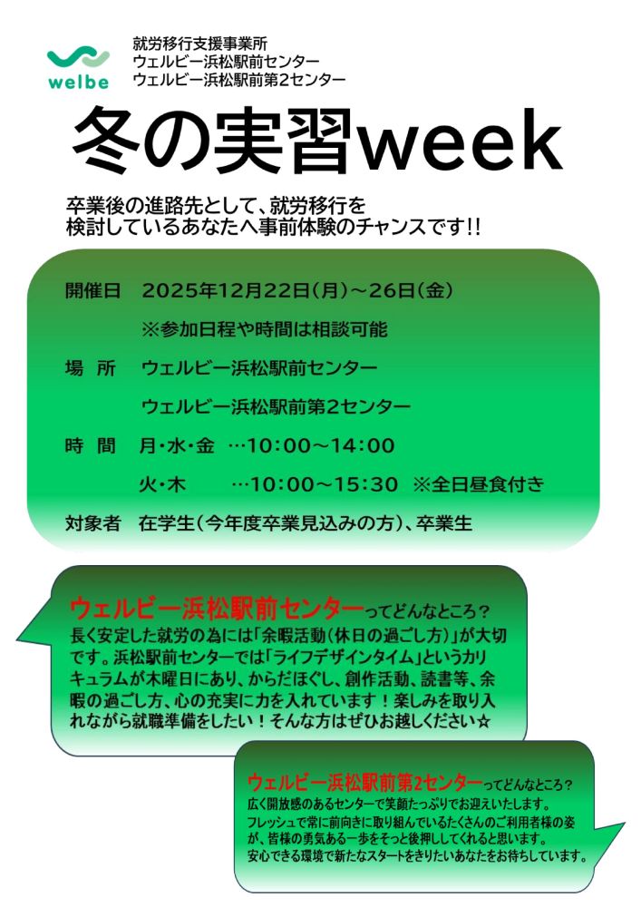 夏休みに続いて冬休み期間中に『2025冬の実習week』を企画いたしました。