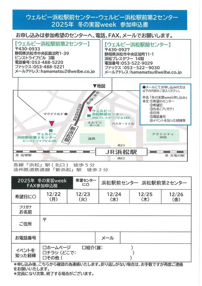 年末年始楽しいイベントが盛りだくさんですが、ウェルビー浜松駅前センターでは、