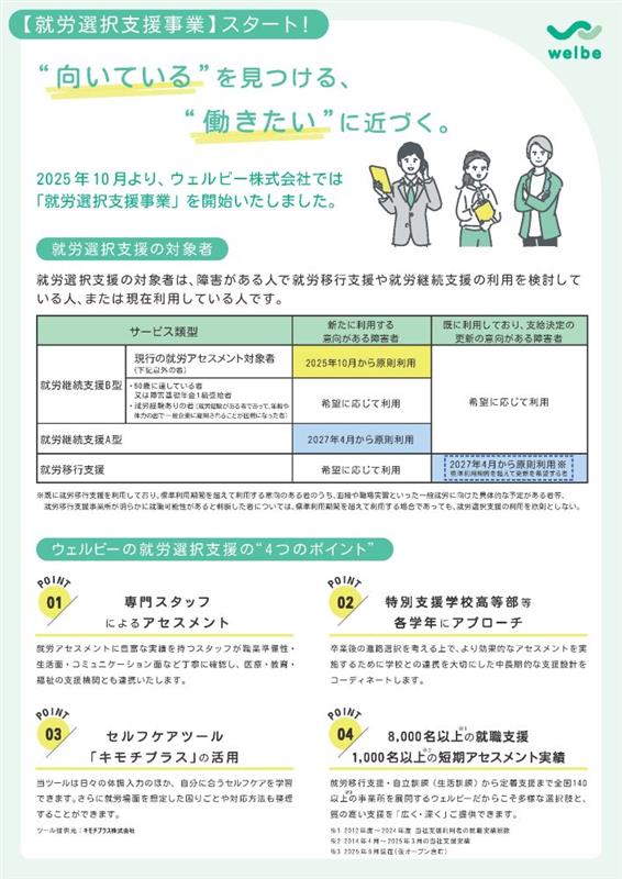 2025年10月に新しく創設された障がいのある方が就労系のサービスを選択する際に、より適切な進路を選べるようサポートする新しい制度です。