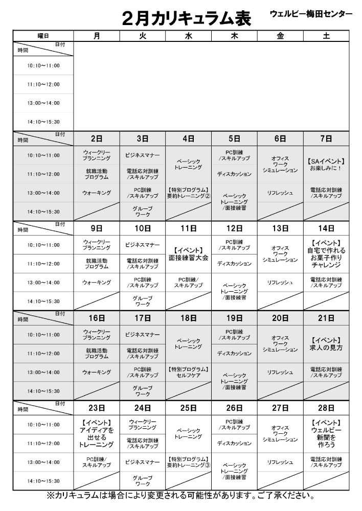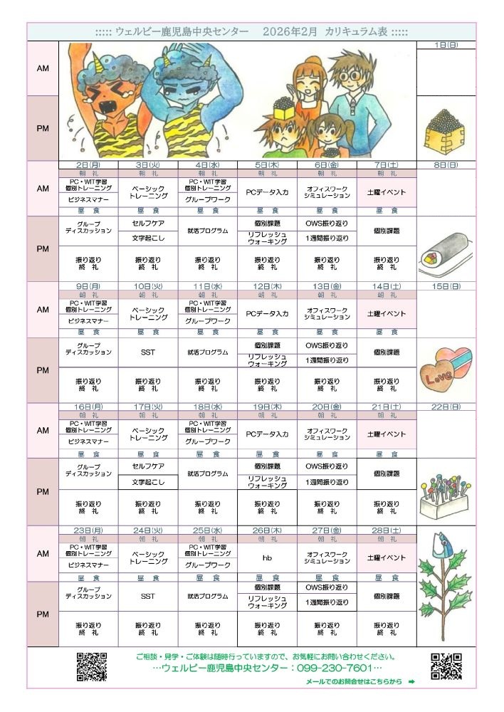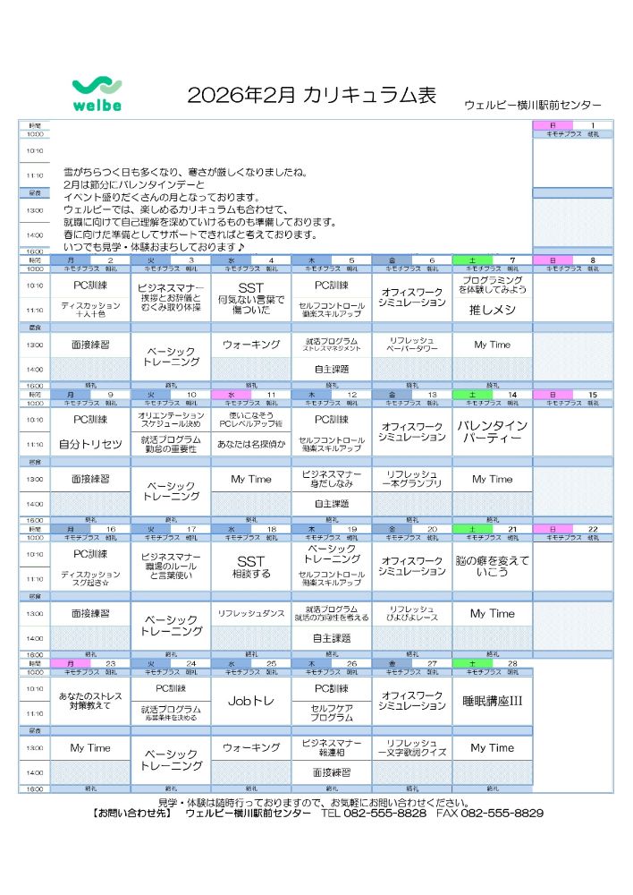 ◇・◇・◇ 2026年2月 カリキュラム表のお知らせ ◇・◇・◇