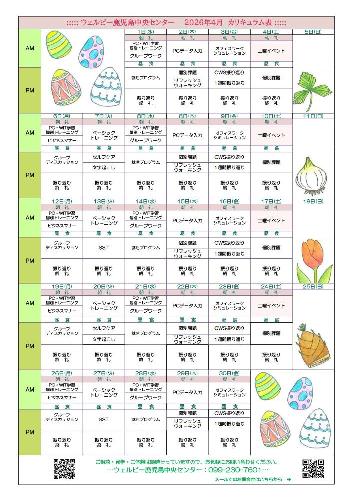 【鹿児島中央】☆ 2026年4月カリキュラム表のご案内 ☆