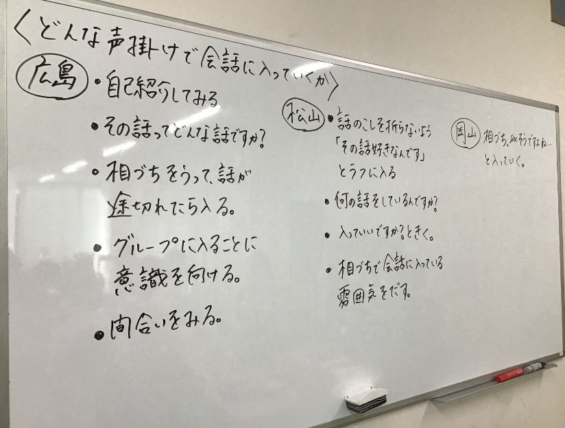 そんな時にどのように会話に入っていくのかを各センターで話し合い、その上でロールプレイを行いました。