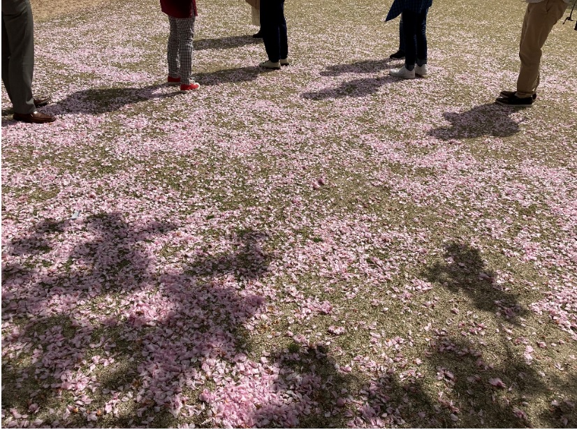 寒暖の差がまだまだ続く中、新緑が眩しい季節になってきた4月14日、午後からの2コマを使ってロングウォーキングをして、縮景園に行ってきました。ソメイヨシノは葉になっていましたが、遅咲きの八重桜は満開でした。みなさんで見ていたところ、ボランティアのガイドさんに声をかけてもらい開花宣言の標本木や、ハンカチの木、植物のことについていろいろと教えていただきました。植物以外にも中央にある池で人面魚を探したり、亀の甲羅干しを見たり、植物以外にもたくさん観察でき、ゆったりとした時間を過ごすことができたのではないでしょうか。
