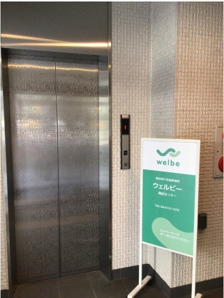 2階フロアにはウェルビーだけなので、もちろんエレベーターは専用。他のテナント様など、知らない人と一緒になることがほとんどないのも梅田センターならではです。