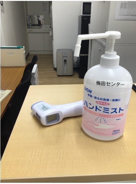 カウンターで体温チェックと手の消毒をしっかりしましょう!!