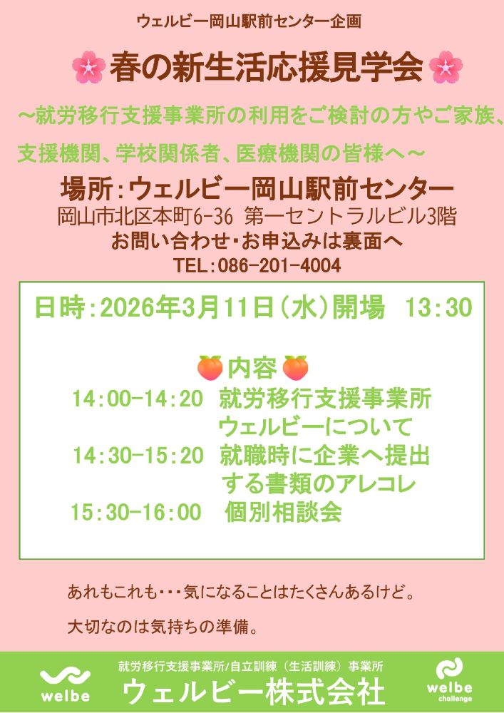 就労移行支援を検討されている方、ご家族、支援者、医療関係者、学校関係者の皆様、奮ってご参加下さい。