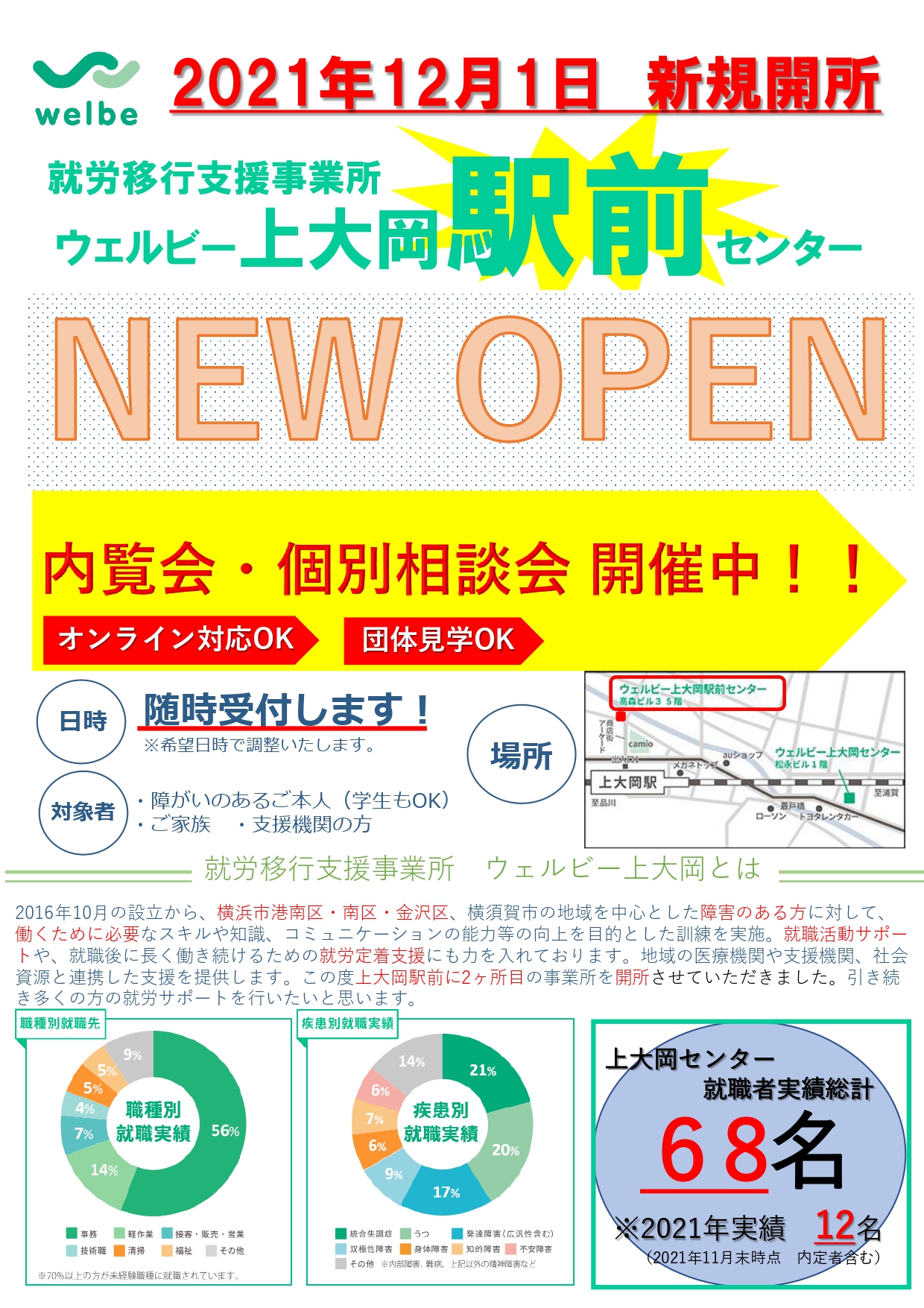 上大岡駅前センターは昨年12月1日に開所し、現在ご利用者様はお一人ですが、この1月にもまた数名の仲間が加わる予定となっております。