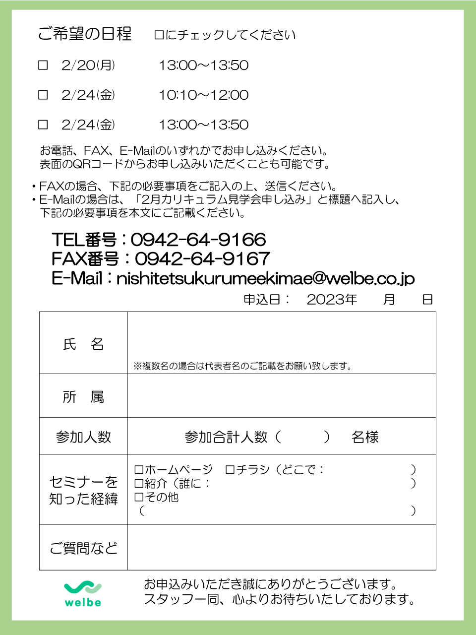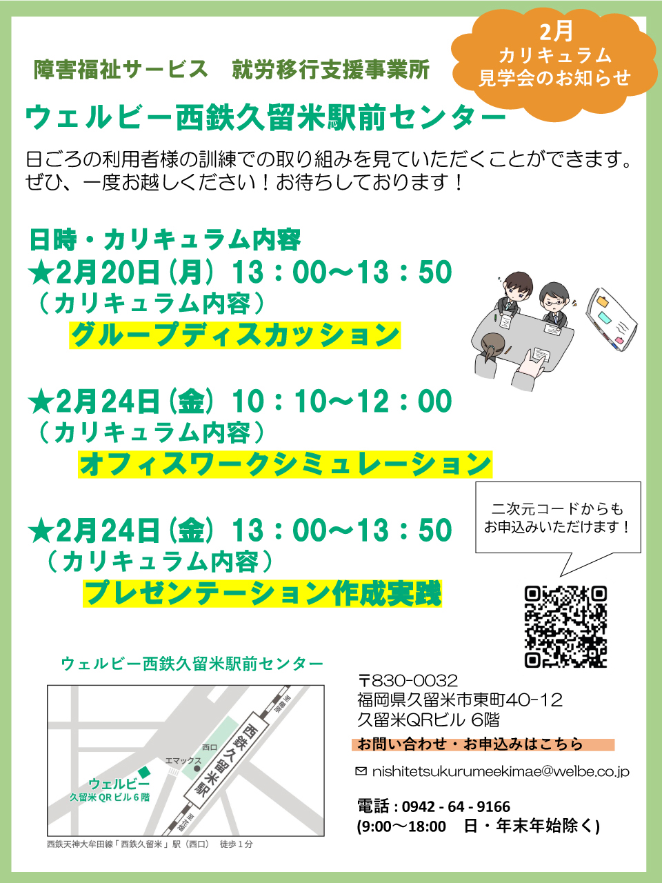 今月は、2月20日(月)・24日(金)に開催する「カリキュラム見学会」です!