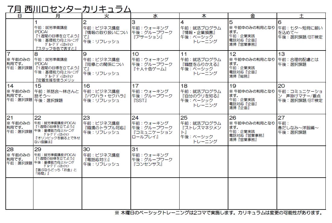 さて、今回は西川口センターで行われる7月のカリキュラムについてご紹介します。