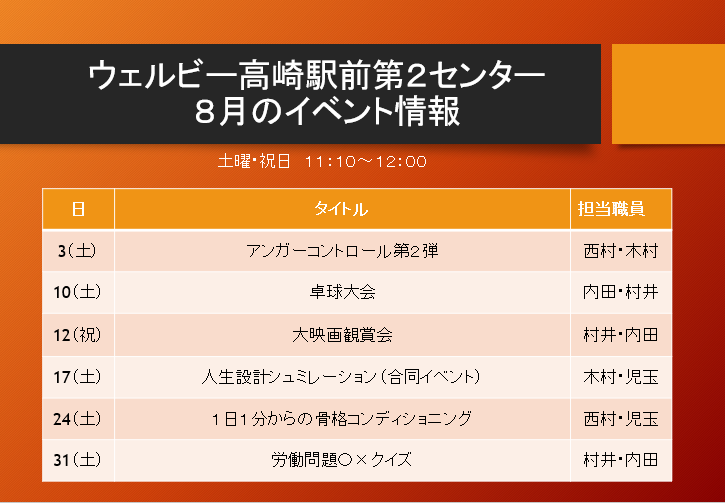 【高崎第2】8月イベント情報
