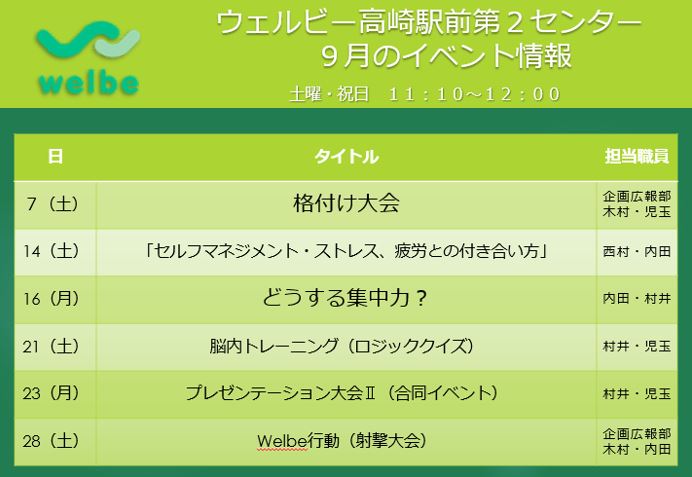 【高崎第2】9月スペシャルイベントのお知らせ