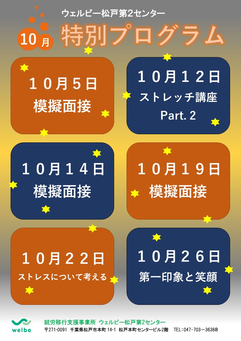 【松戸第2】10月の特別プログラムのお知らせ