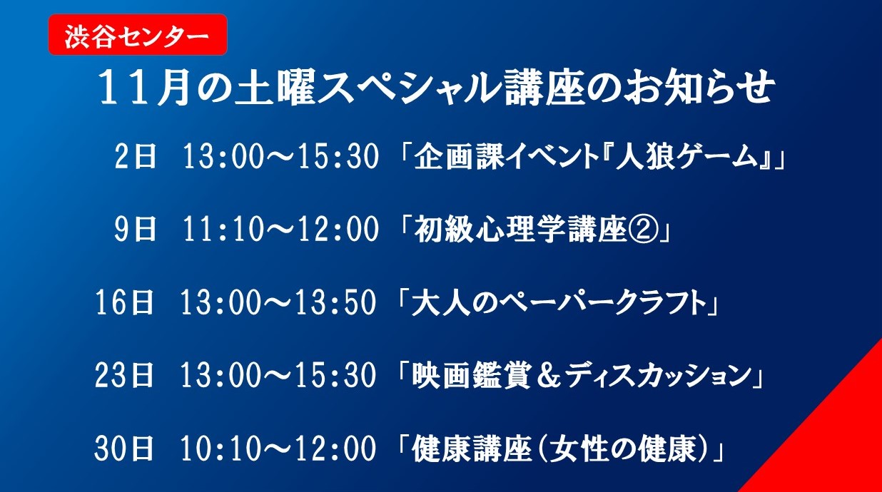 今回は11月の土曜日のイベントの一覧とその概要をご紹介します。