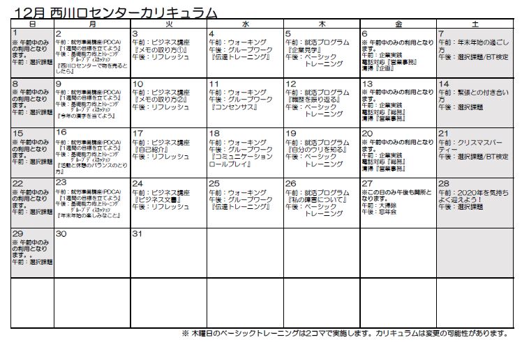 西川口センターでは、12月も冬の寒さに負けないカリキュラムを予定しています!
