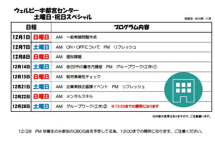 他にも「自己PR書き方講座」「ON・OFFの過ごし方」「ストレスチェック」等の講座を予定しています。