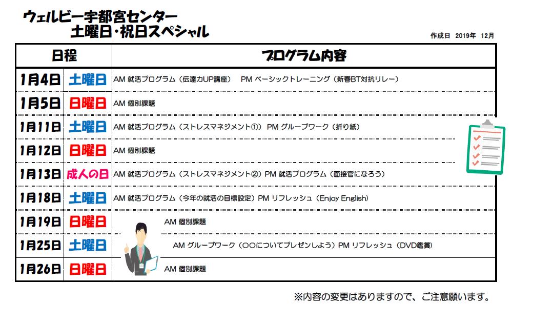新年を迎え、新たな気分でお過ごしのことと思います。ウェルビー宇都宮センターです。