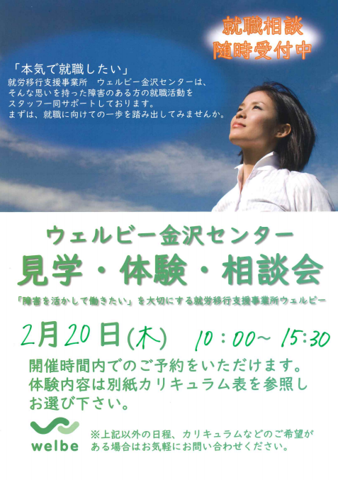 【金沢】2月の見学・体験・相談会のお知らせ(2/20)