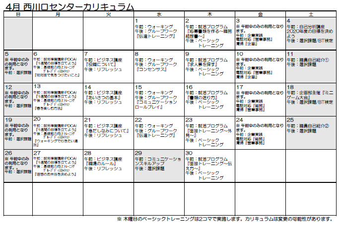 それでは、今月も西川口センターのカリキュラムをご紹介していきたいと思います。