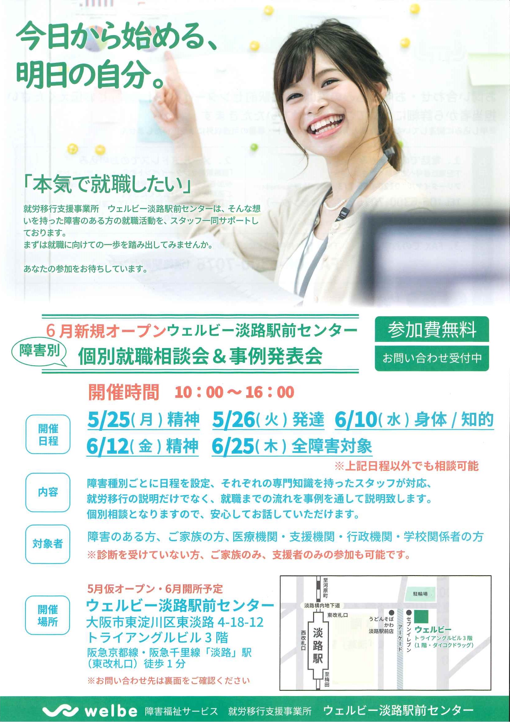 淡路駅前センターでは、新規オープンに伴い、【個別就職相談会&事例発表会】を実施いたします!