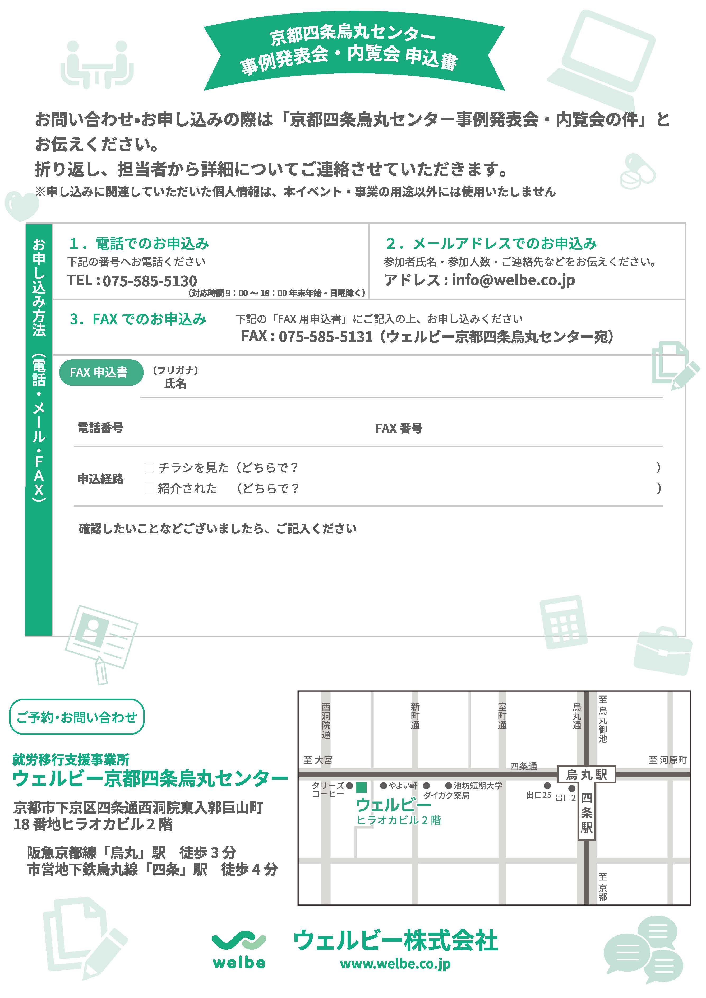 - 件名:「ウェルビー京都四条烏丸センター イベント申し込み」
