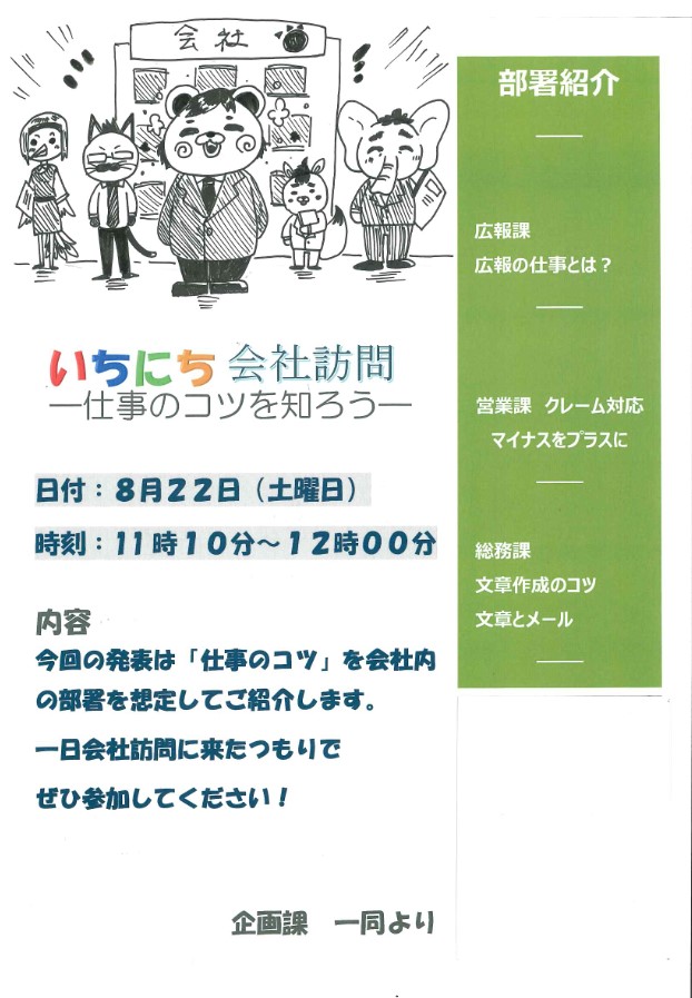 企業見学をまだ経験していない方でも仕事をイメージしやすく分かりやすい発表を目指しています!!
