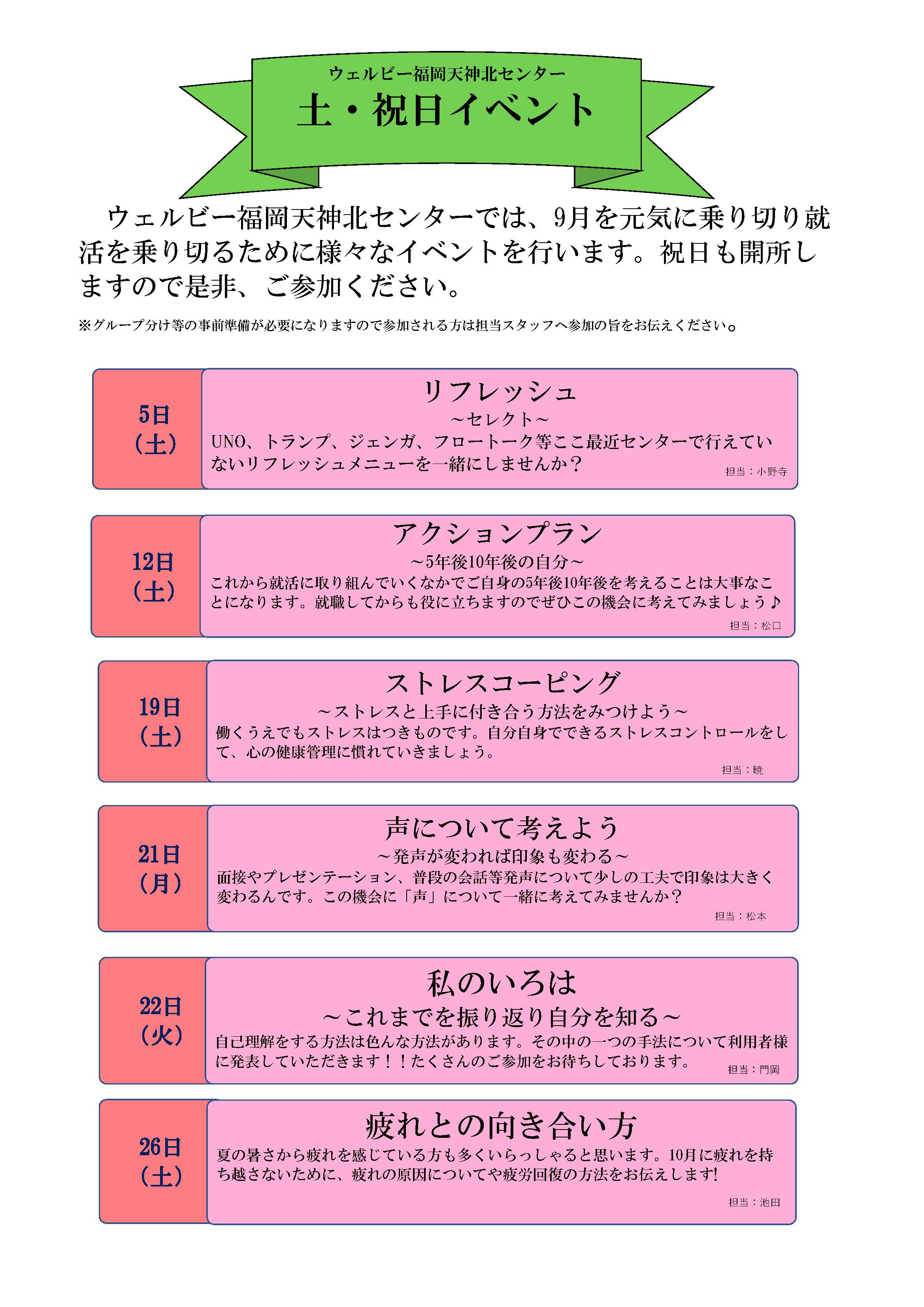 ウェルビー福岡天神北センターでは、毎月土曜祝日イベントを行っています。