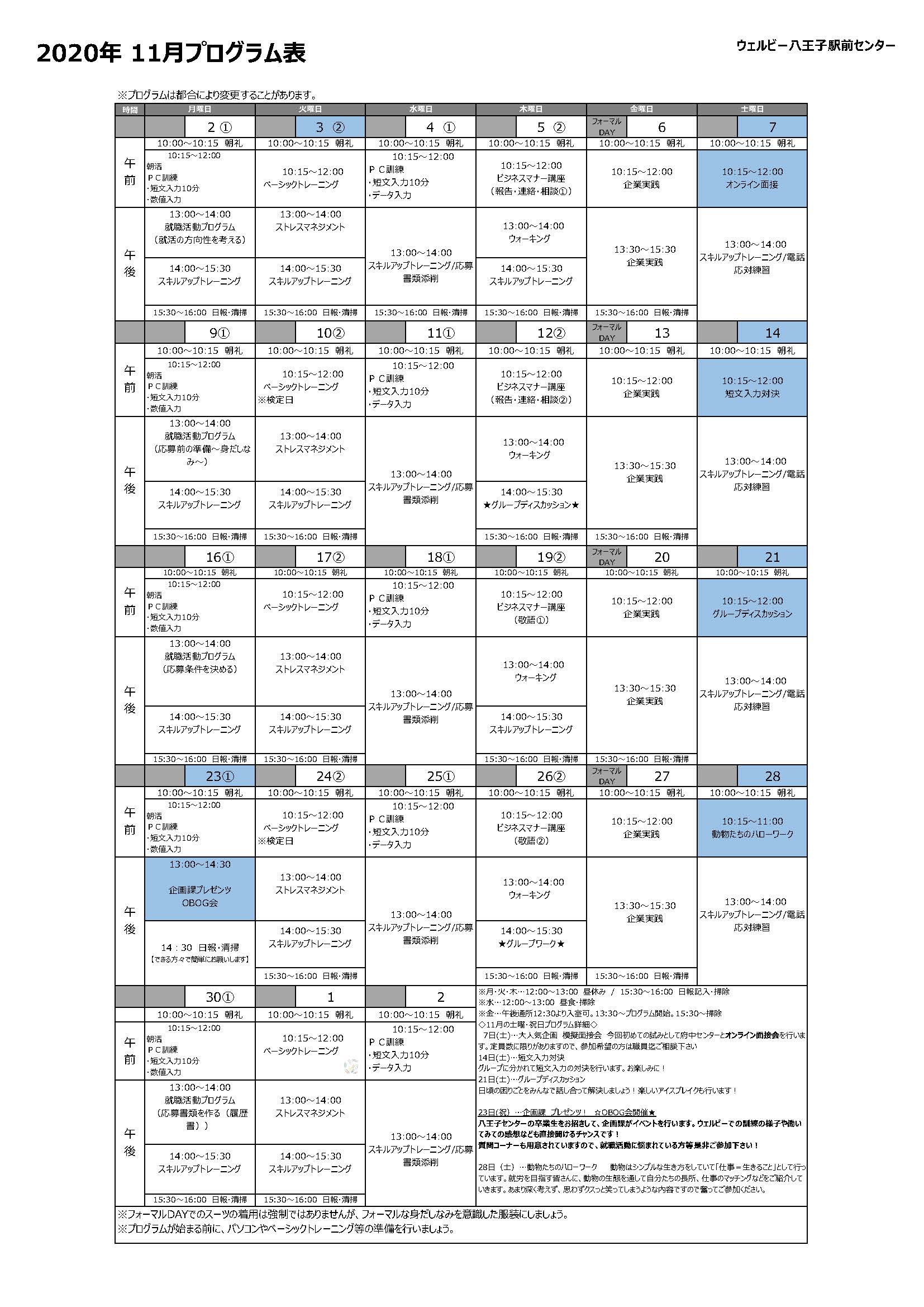 さて、ご連絡が遅くなってしまいましたが、11月のカリキュラムを紹介したいと思います。