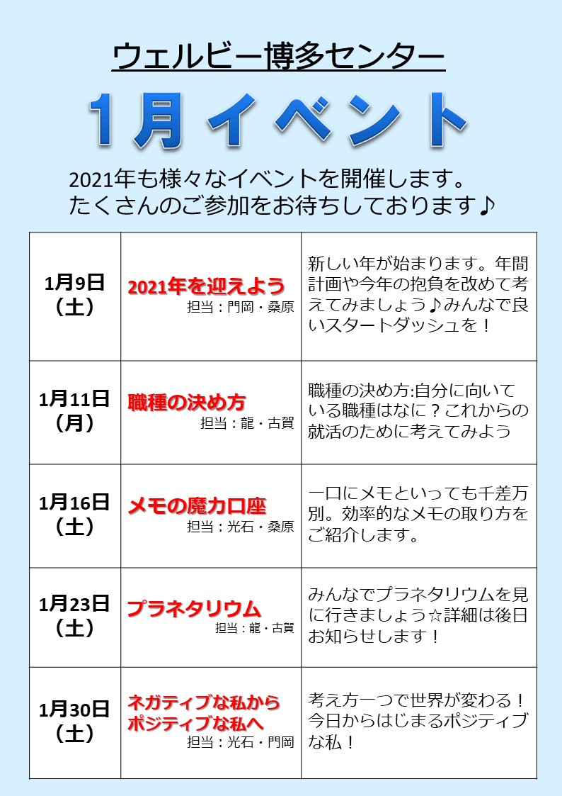 ⭐ウェルビー博多センター1月イベントの案内⭐
