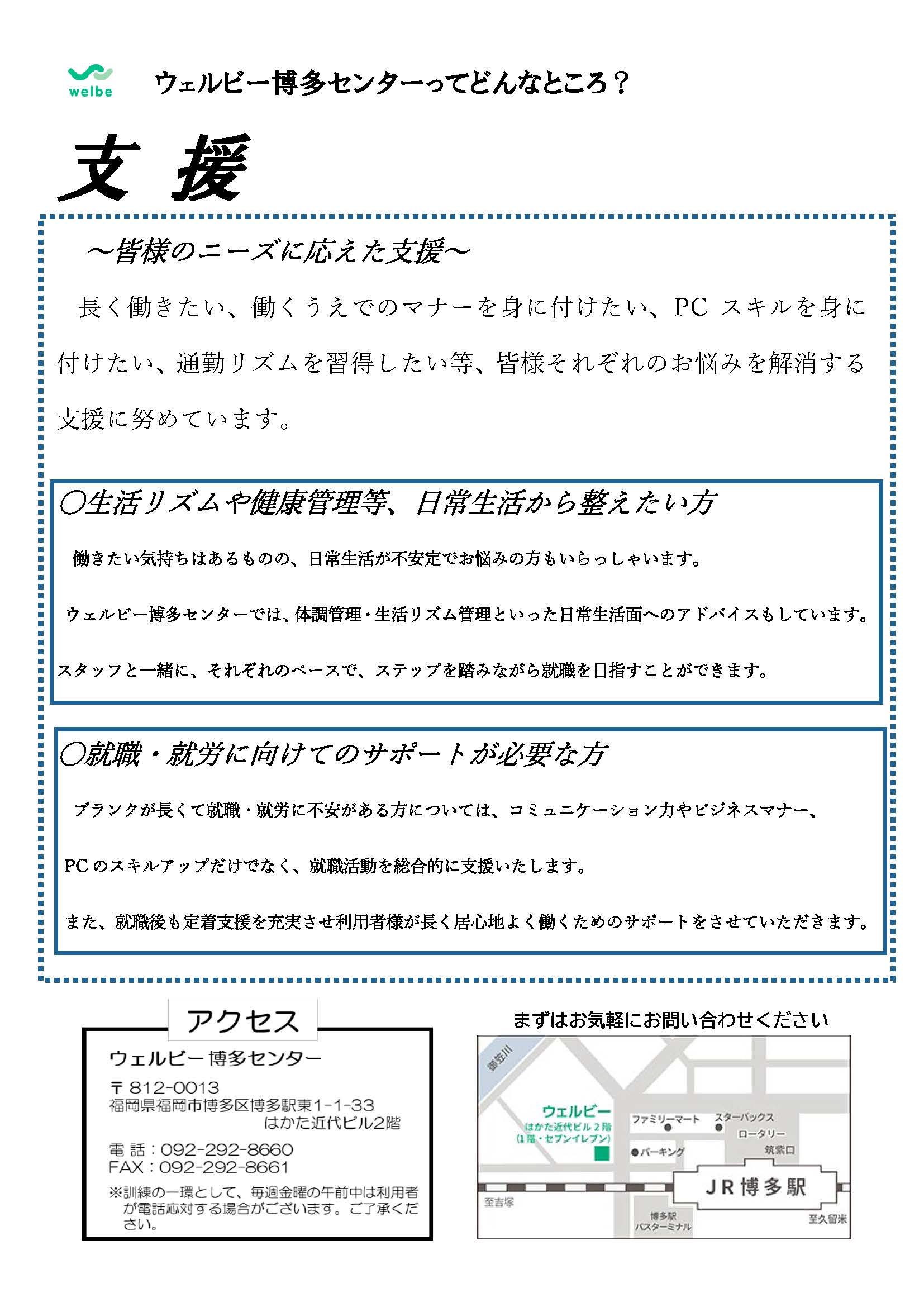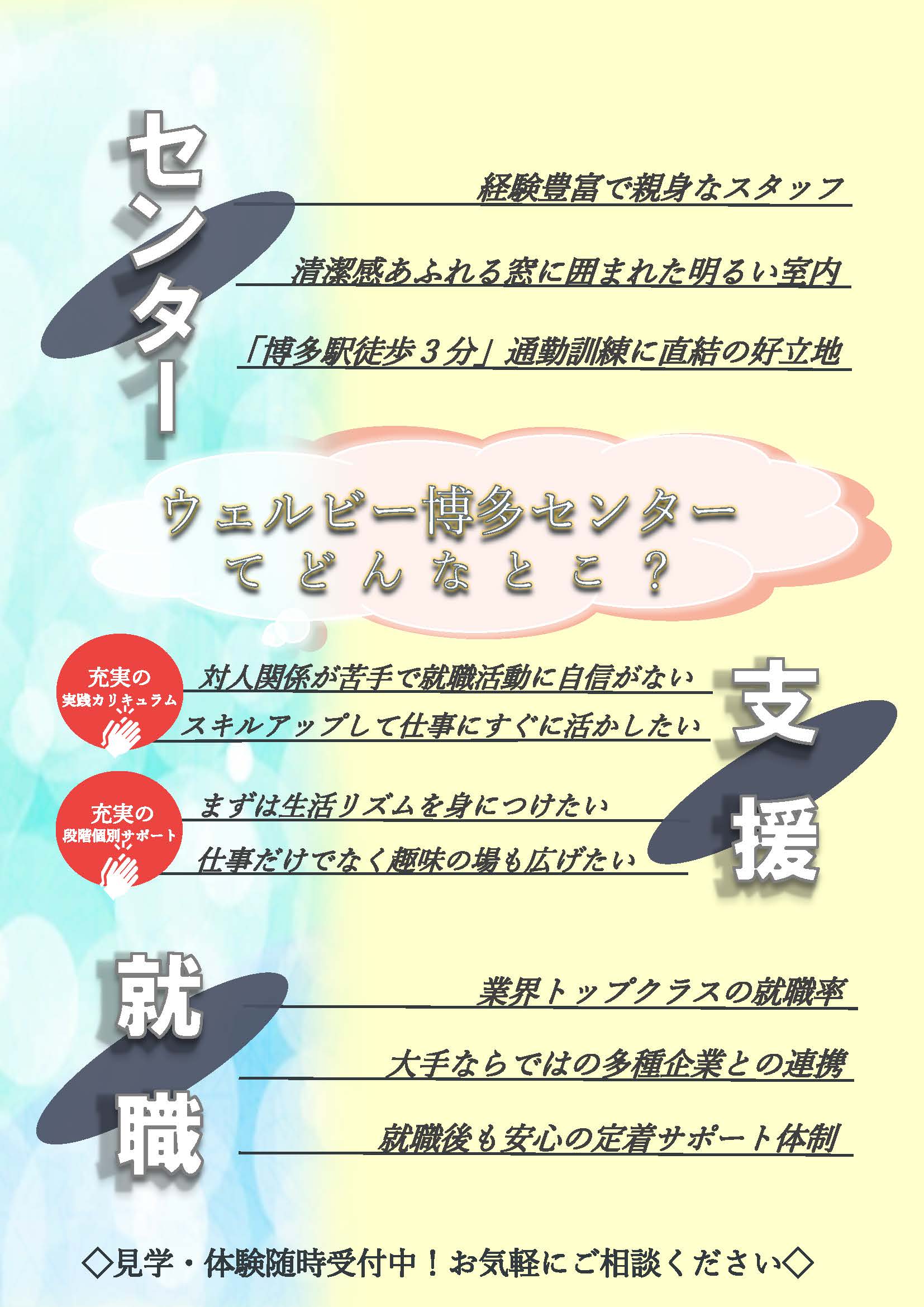 今回はウェルビー博多センターの魅力についてお話したいと思います!