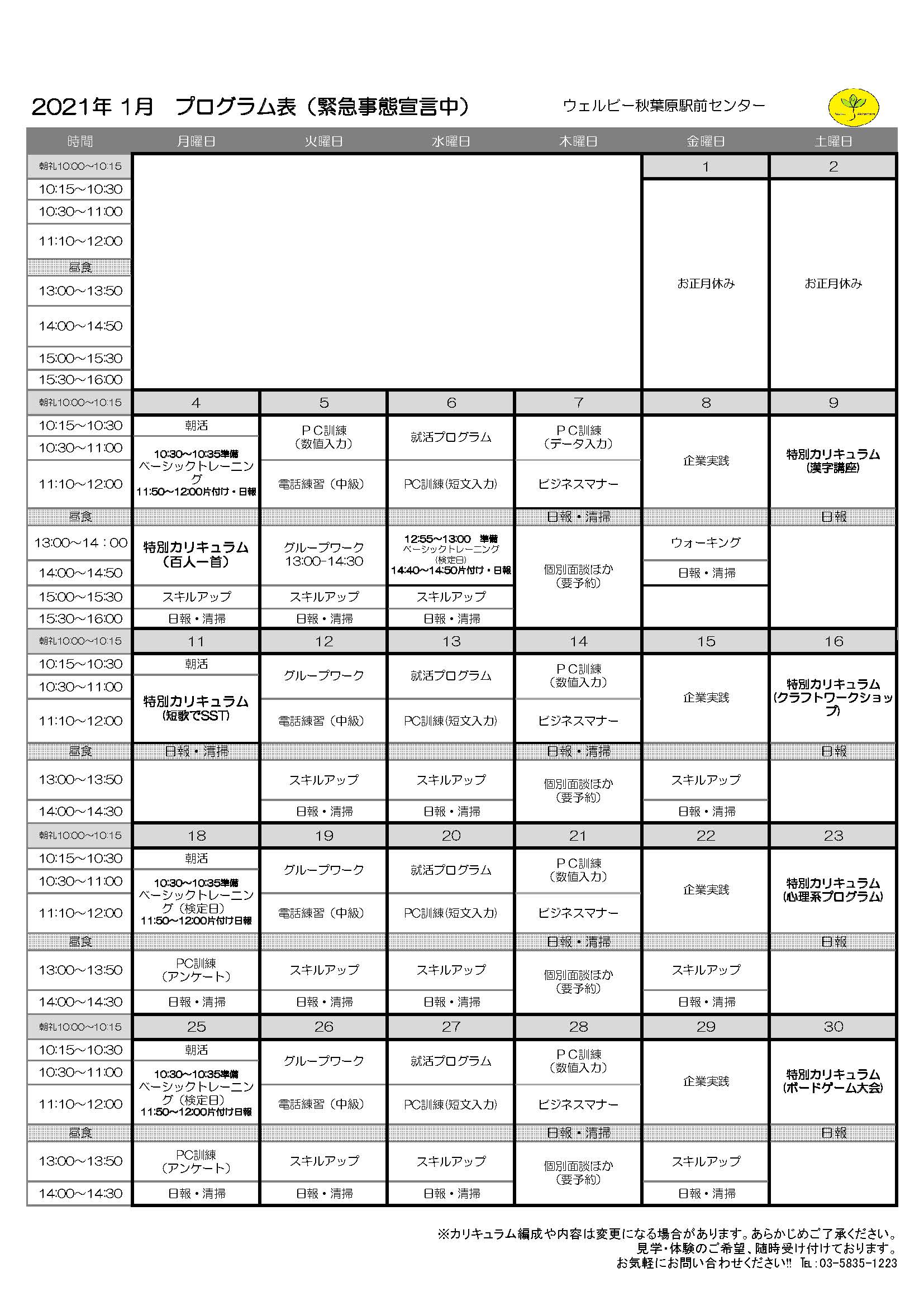 緊急事態宣言の発令に伴い、ウェルビー秋葉原駅前センターでは、