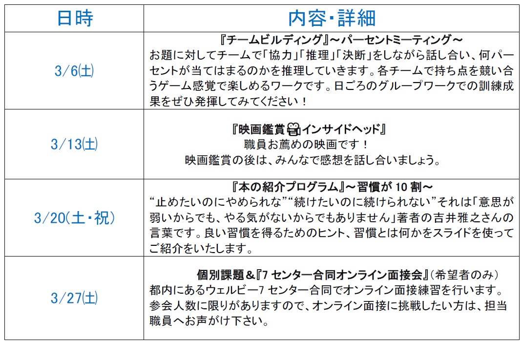 3月も特別カリキュラを企画しみなさまをお待ちしております。