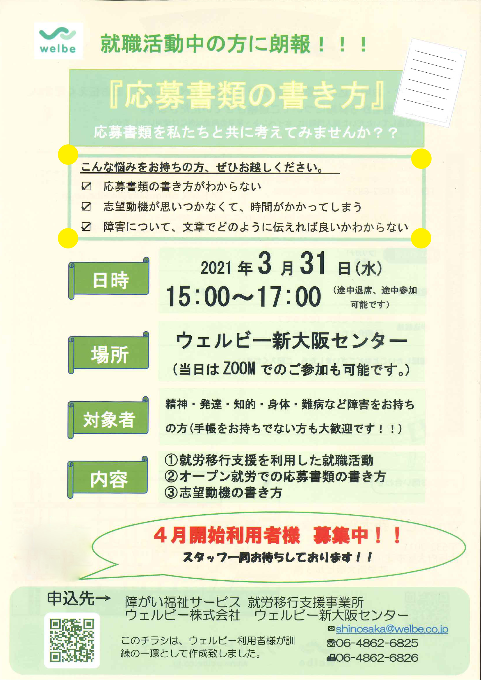 【新大阪】3/31(水)イベント「応募書類の書き方」ご案内