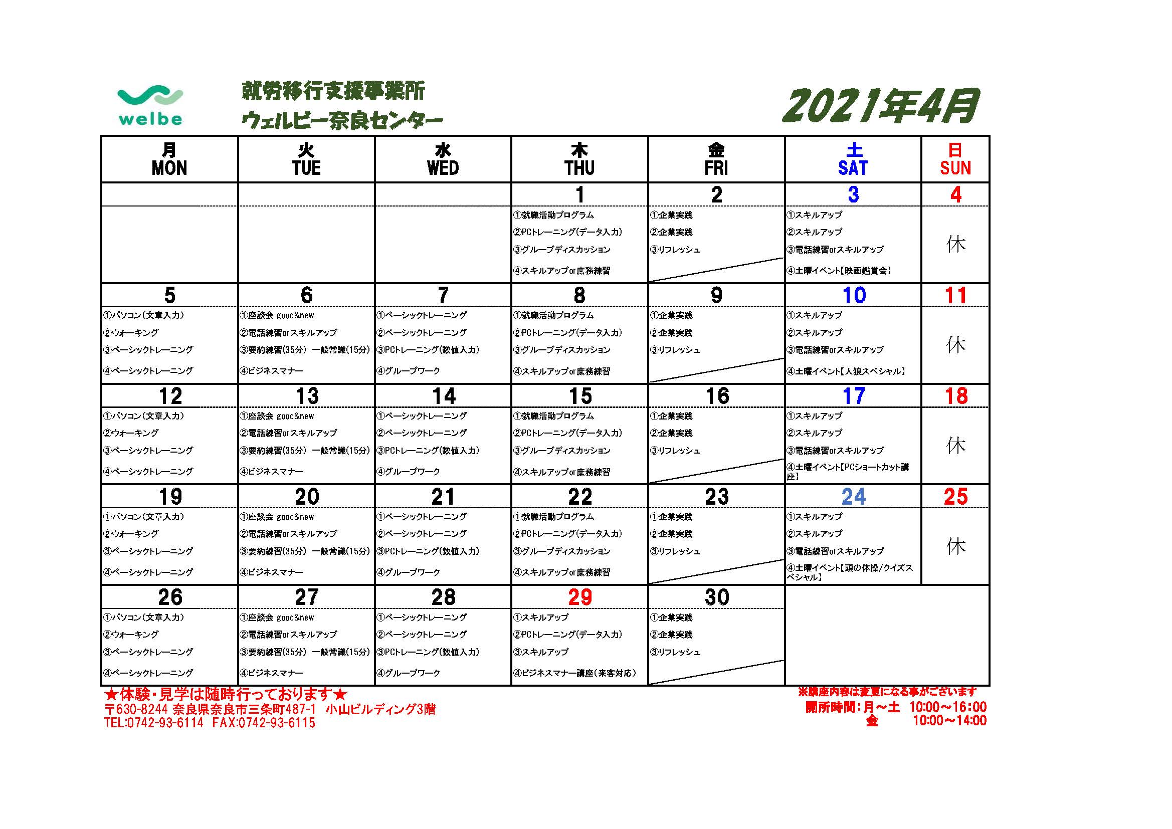 4月の土曜日・祝日のイベント内容は、下記の内容になっています。