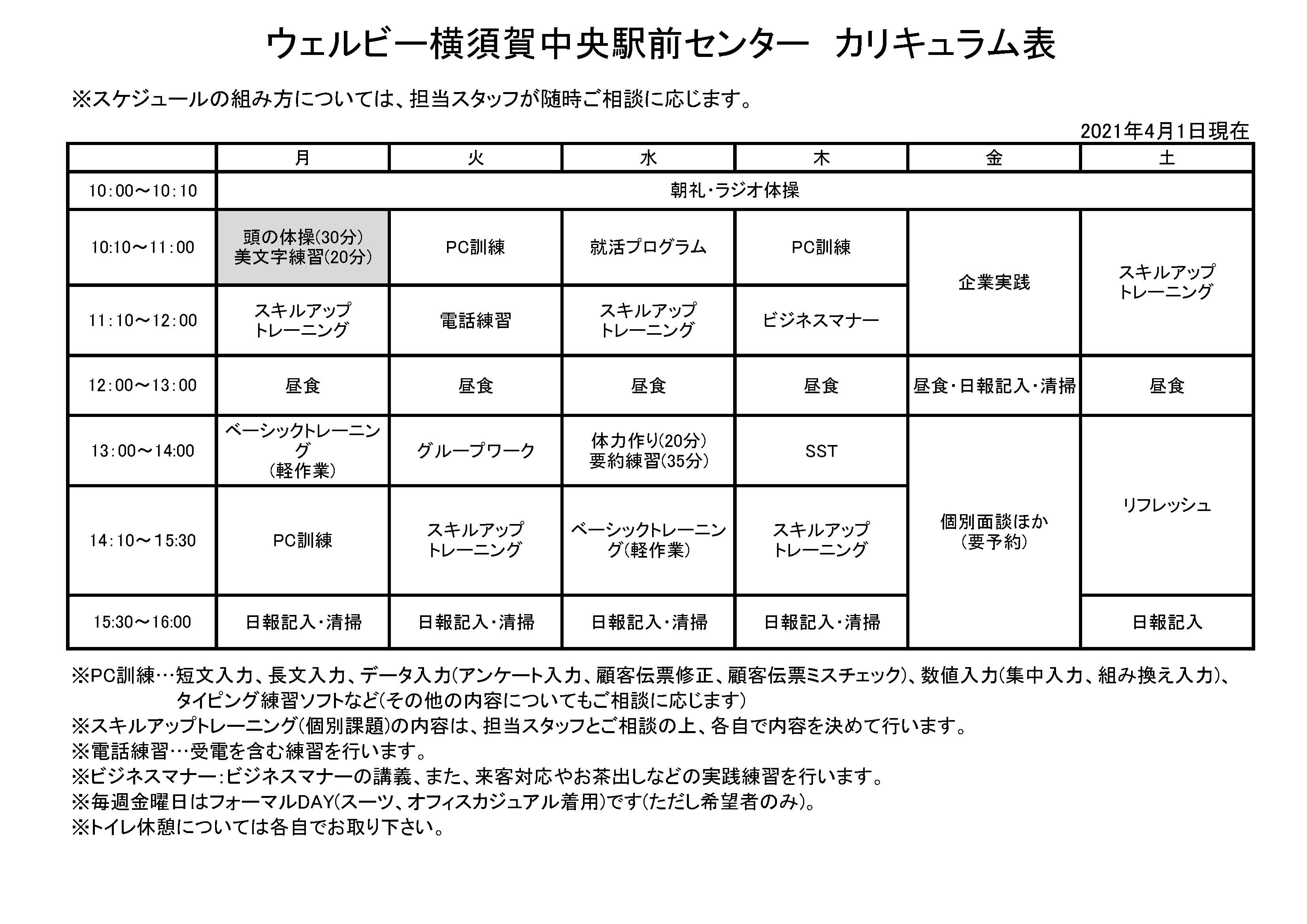 この度、ウェルビー横須賀中央駅前センターでは月曜日1コマ目のカリキュラムを一部変更することになりました。