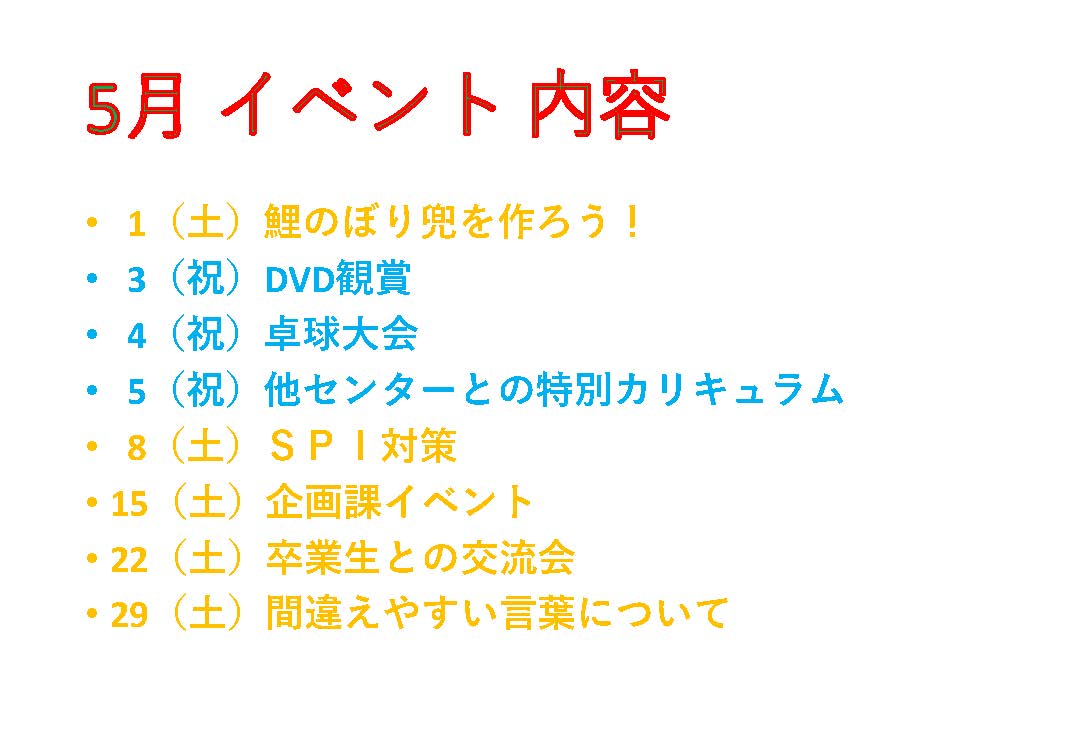 ゴールデンウィーク及び5月のイベントのご案内です↓↓↓